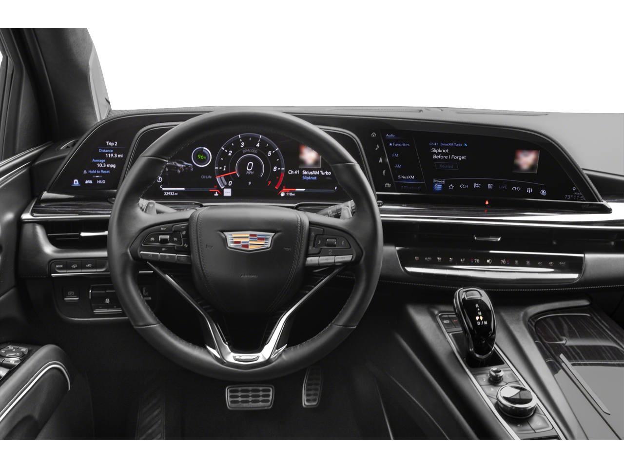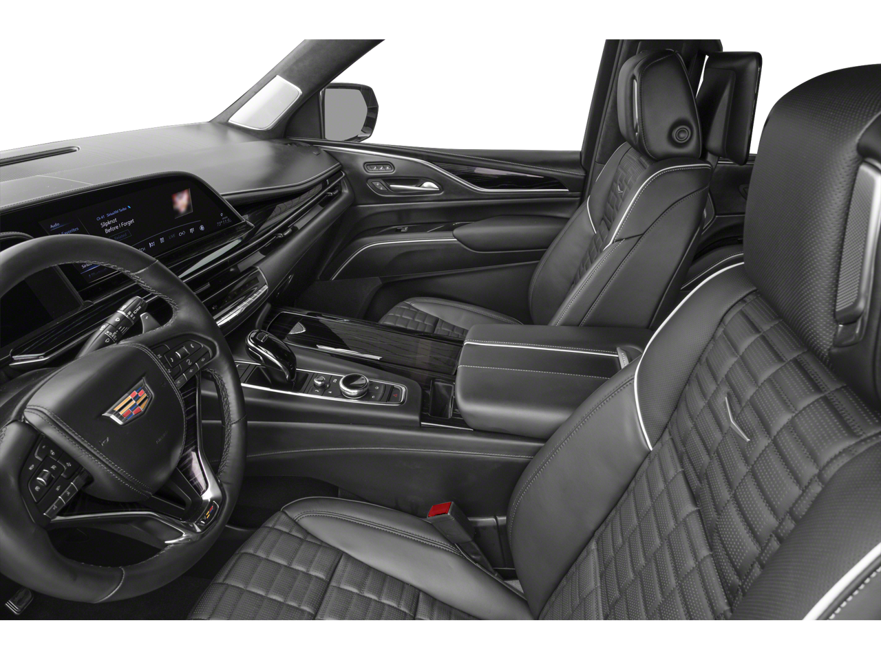 Preferred Equipment Group 1SD: Trailer Side Blind Zone Alert; Power Panoramic Tilt-Sliding Sunroof; Enhanced Automatic Parking Assist; Smart Trailer Integration Indicator; Floor Console with Covered Storage; Rear Camera Mirror Washer; Rear Camera Mirror; Theft-Deterrent Alarm System; Rear Seat Entertainment System; Vehicle Interior Movement Sensor; Platinum Interior Trim; Rear Cross Traffic Alert; Vehicle Inclination Sensor; Reverse Automatic Braking; Glass Breakage Sensor; Power Lumbar Massage Front Passenger Seat; Adaptive Cruise Control; Automatic Seat Belt Tightening; Body-Color Door Handles; Door Lock and Latch Shields; Electronic Limited-Slip Differential; Active Noise Cancellation; AKG Studio Reference 36-Speaker Audio System; Integrated Trailer Brake Controller; Hitch Guidance with Hitch View; Touring Package; Power Lumbar Massage Driver Seat; Heated and Ventilated Driver and Front Passenger Seats; 22" 18-Spoke Alloy Wheels; Reconfigurable Full-Color Head-Up Display; Magnetic Ride Control Suspension; Power-Retractable Assist Steps; Enhanced Automatic Emergency Braking. Crystal White Tricoat. Black Roof Rack Cross Rails. Monochrome Cadillac Emblems. **Equipment listed is based on original vehicle build and subject to change. Please confirm the accuracy of the included equipment by calling the dealer prior to purchase.**